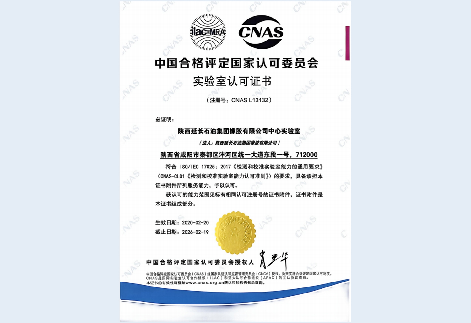 2月20日,公司通過(guò)行之有效的措施嚴(yán)格執(zhí)行CNAS 質(zhì)量管理體系要求,順利取得了CNAS實(shí)驗(yàn)室認(rèn)可證書(shū)。